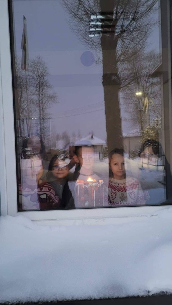 pilietinės iniciatyvos „Pergalės šviesa“. Mokyklos languose dešimčiai minučių uždegėme